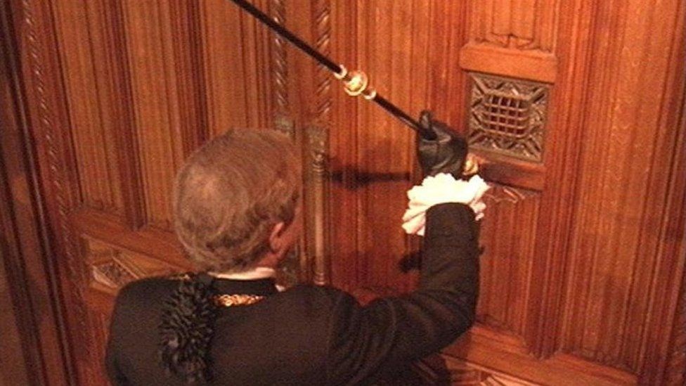 Δεν υπήρχε στρατιωτική παρουσία ούτε στρατιωτική μπάντα προς τιμήν της βασίλισσας έξω από το Παλάτι του Ουέστμινστερ. Η μόνη παράδοση που τηρήθηκε ήταν η Μαύρη Ράβδος, κατά την οποία η Λαίδη Ούσερ της Μαύρης Ράβδου φθάνει στην αίθουσα και χτυπά με τη ράβδο τρεις φορές για να της ανοίξουν, συμβολίζοντας την ανεξαρτησία των Κοινοτήτων από τη μοναρχία.