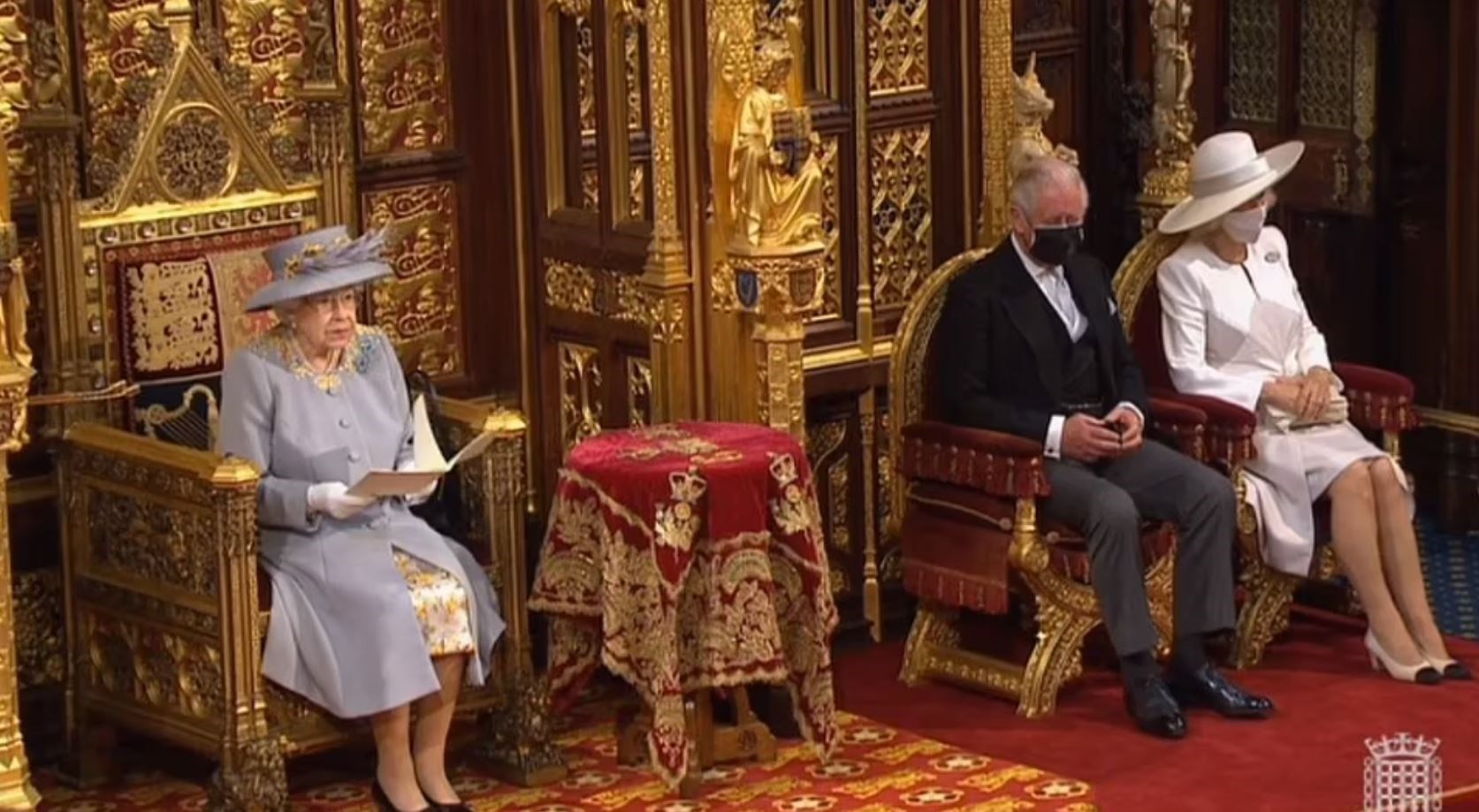 Ο θρόνος πλέον ήταν μόνο για ένα άτομο και εκεί κάθισε μόνη της η Ελισάβετ, ενώ ο Κάρολος και η Καμίλα κάθισαν πιο δίπλα, σε έδρες της Βουλής. Η βασίλισσα ανακοίνωσε όπως κάθε φορά τη νομοθετική ατζέντα της κυβέρνησης.