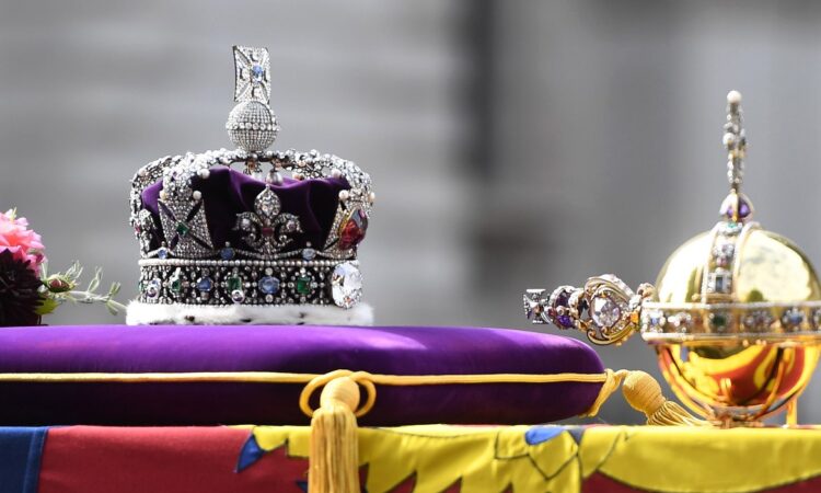 Το φέρετρο της βασίλισσας Ελισάβετ, στην κορυφή του είχε το Imperial State Crown, (αυτοκρατορικό στέμμα) ίσως το πιο οικείο αντικείμενο στα Crown Jewels – μια ανεκτίμητη συλλογή από δεκάδες χιλιάδες πολύτιμους λίθους που συλλέγονται ανά τους αιώνες από Βρετανούς βασιλιάδες και βασίλισσες. Το στέμμα έχει σχεδόν 3.000 πέτρες – μεταξύ των οποίων 2.868 διαμάντια, 273 μαργαριτάρια, 17 ζαφείρια, 11 σμαράγδια και πέντε ρουμπίνια.