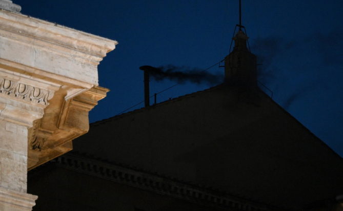 Μαύρος καπνός βγήκε από την καμινάδα της Καπέλα Σιξτίνα, στο Βατικανό, καθώς ολοκληρώθηκε, χωρίς αποτέλεσμα, η πρώτη ψηφοφορία του κονκλάβιου των 135 καρδιναλίων για την εκλογή νέου Πάπα.