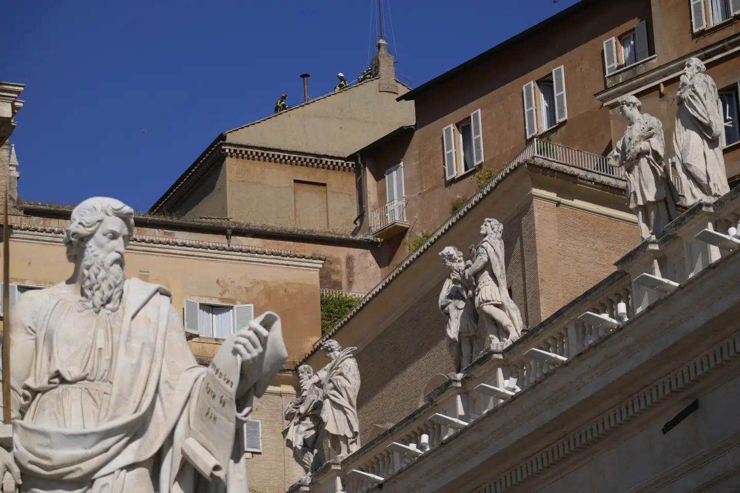 Οι εργάτες στο Βατικανό άρχισαν να εγκαθιστούν την καμινάδα στην οροφή της Καπέλα Σιξτίνα ενόψει του κονκλάβιου της επόμενης εβδομάδας που θα εκλέξει νέο Πάπα.