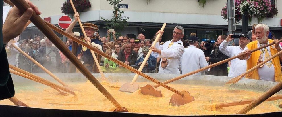 Εκατοντάδες άνθρωποι συγκεντρώθηκαν στην πόλη Μαλμεντί στο ανατολικό Βέλγιο, τους οποίους η πρόεδρος του τοπικού παραρτήματος της “αδελφότητας της τεράστιας ομελέτας”, Μπενεντίκτ Ματί, διαβεβαίωσε ότι το έδεσμα που θα δοκίμαζαν ήταν απόλυτα ασφαλές. Με τη συνοδεία ζωντανής μουσικής όλοι μαζί έσπευσαν να γευτούν την εντυπωσιακή σε μέγεθος ομελέτα.