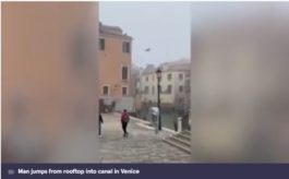 Ανθρωποκυνηγητό για να εντοπίσουν έναν άνδρα που βούτηξε σε κανάλι στην Βενετία από τον τρίτο όροφο κτιρίου της ιστορικής πόλης έχουν εξαπολύσει οι ιταλικές αρχές.
