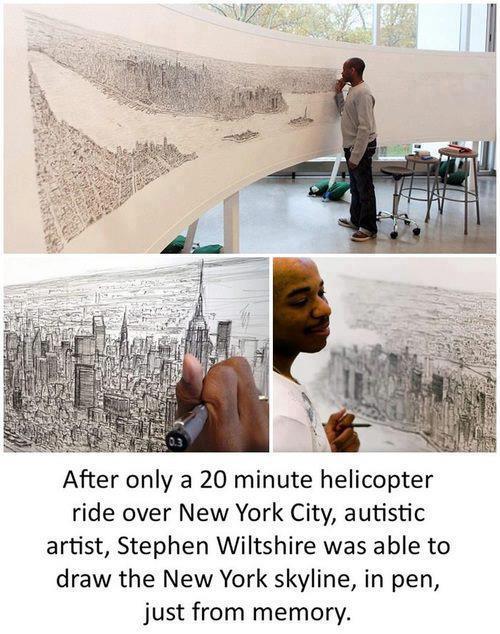 Ο Stephen Wiltshire, που είναι γνωστός ως the living camera ή the human camera, είναι ένας καλλιτέχνης που αν και αυτιστικός έχει την ικανότητα να απομνημονεύει ό,τι βλέπει με μια ματιά και να τα σκιτσάρει με κάθε λεπτομέρεια.