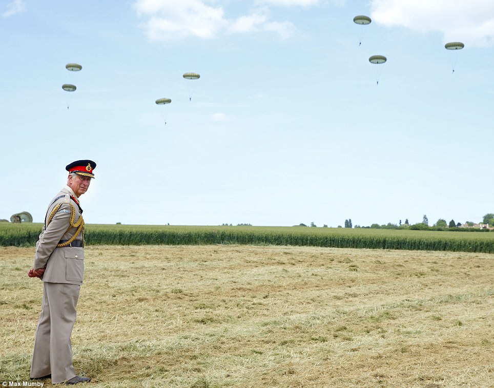 Ο βετεράνος και ο συνοδός του προσγειώθηκαν ακριβώς μπροστά στον πρίγκιπα Κάρολο, ο οποίος περίμενε να… ξελαχανιάσει ο 89χρονος για να του σφίξει το χέρι. Ως επικεφαλής του τάγματος των αλεξιπτωτιστών, ο διάδοχος του βρετανικού θρόνου προΐσταται των τελετών προς τιμή των ανθρώπων που συμμετείχαν στο πρώτο κύμα της απόβασης, τη νύχτα της 5ης προς την 6η Ιουνίου.