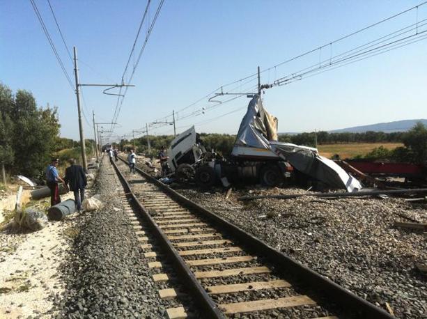 Μία αμαξοστοιχία υψηλής ταχύτητας εκτροχιάστηκε, μετά από σύγκρουση με νταλίκα, σήμερα το μεσημέρι στην Πούλια της Ιταλίας. Ήταν η αμαξοστοιχία 9351 που αναχώρησε από τη Ρώμη σήμερα το πρωί στις 08:45 με προορισμό το Λέτσε, στον Νότο της Ιταλίας.Λίγο μετά τις 13:30 και ενώ η αμαξοστοιχία βρισκόταν εν κινήσει στο ύψος του Μπρίντιζι, συγκρούστηκε με μια νταλίκα που είχε μείνει ακινητοποιημένη επάνω στην διάβαση. Συμφώνα με πληροφορίες ένας άνθρωπος έχασε τη ζωή του ενώ 25 άλλοι τραυματίστηκαν σοβαρά.