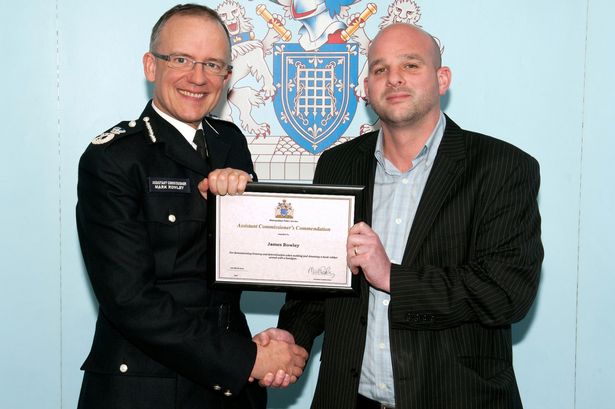 Ο «ήρωας» Ρόουλεϊ βραβεύτηκε για την ανδρεία του από τον βοηθό Διευθυντή της αστυνομίας.