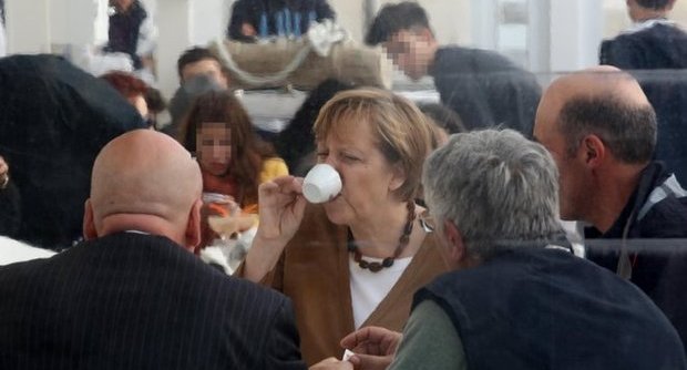 Χθες, κι όπως μαρτυρά ο φωτογραφικός φακός, πάντα στο πλευρό του πρώτου κυρίου της Γερμανίας απόλαυσε τον καφέ της στο ιστορικό κέντρο του Ποτσουόλι, μίας από τις ιστορικές πόλεις της επαρχίας της Νάπολης.