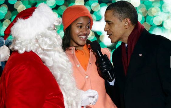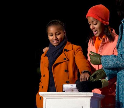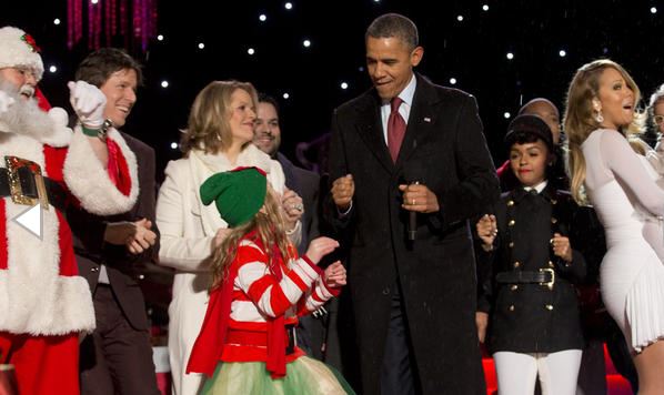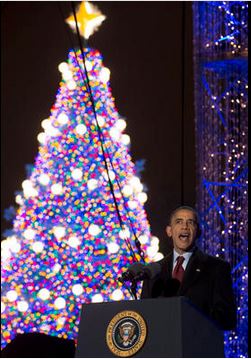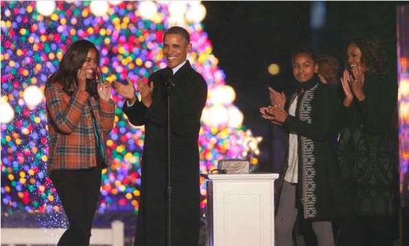 Ο Ομπάμα, μαζί με την Πρώτη Κυρία Μισέλ και τις δυο τους κόρες μέτρησαν αντίστροφα έως το άναμμα του γιγαντιαίου χριστουγεννιάτικου δέντρου και έστειλε μήνυμα ευχαριστίας στα αμερικανικά στρατεύματα που θα είναι μακριά από τις οικογένειές τους κατά τη διάρκεια της περιόδου των εορτών.