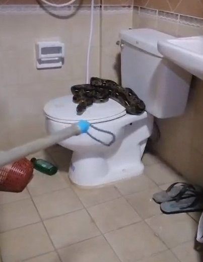 Όταν έφθασαν οι διασώστες βρήκαν το φίδι κουλουριασμένο στο καπάκι της τουαλέτας. Το αιχμαλώτισαν και το μετέφεραν σε καταφύγιο απ’ όπου θα μεταφερθεί και πάλι στο φυσικό του περιβάλλον.