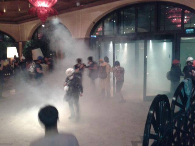 Κατά τη διάρκεια της επιχείρησης εκκένωσης, πανικόβλητοι διαδηλωτές προσπαθούσαν να βρουν καταφύγιο ακόμα και σε πολυτελή ξενοδοχεία της περιοχής, με τις δυνάμεις ασφαλείας να συνεχίζουν να ρίχνουν χημικά. Ανεπιβεβαίωτες πληροφορίες κάνουν λόγο για έναν νεκρό.