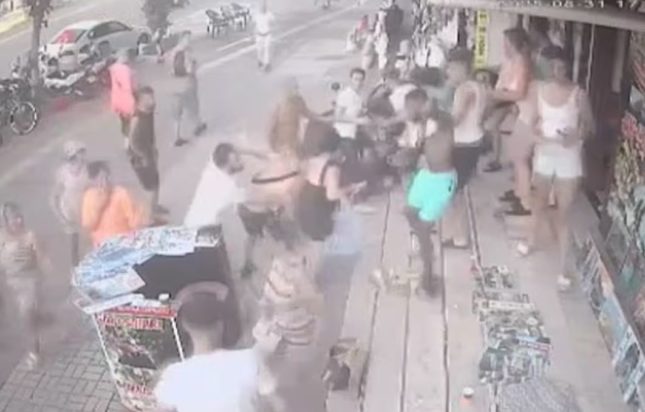 Μια βίαιη σύγκρουση ανάμεσα σε Βρετανούς τουρίστες και Τούρκους καταστηματάρχες εκτυλίχθηκε στην Αλάνια, παραθαλάσσιο τουριστικό θέρετρο της Τουρκίας, με το περιστατικό να καταγράφεται από κάμερες ασφαλείας.