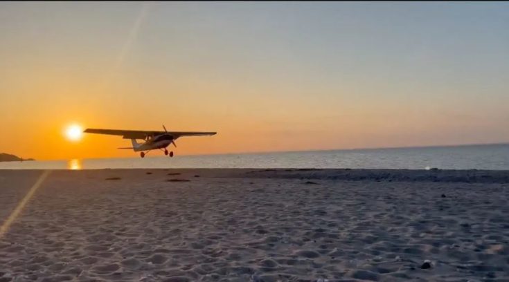 Το βίντεο που δημοσιεύτηκε στα μέσα κοινωνικής δικτύωσης δείχνει το μονοκινητήριο Cessna 152 να γλιστράει πάνω από τη μικρή λωρίδα άμμου στην παραλία Cedar στο όρος Σινά τη στιγμή που ο ήλιος έδυε στον ορίζοντα.