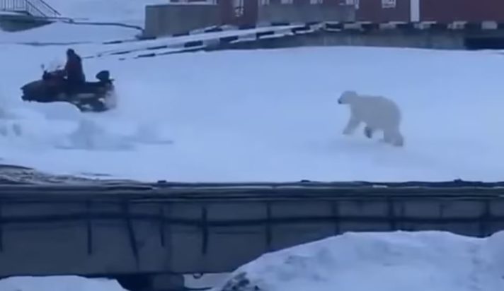 Ένας άνδρας καταγράφηκε σε βίντεο να τρέχει απεγνωσμένα μακριά από μια πολική αρκούδα, την οποία είχε επιχειρήσει να πυροβολήσει σε ένα απομακρυσμένο νησί της Αρκτικής.