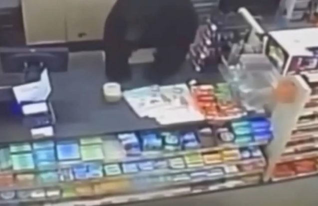 Χωρίς να προλάβει να γυρίσει πίσω, η τεράστια αρκούδα άρχισε να τον κυνηγάει μέσα στο κατάστημα, με τον ίδιο να τρέχει για να σωθεί.