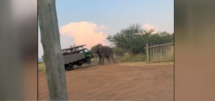 Τουρίστες κατέγραψαν σε βίντεο την τρομακτική στιγμή που ένας ελέφαντας επιτέθηκε και προσπάθησε να αναποδογυρίσει ένα όχημα γεμάτο με τουρίστες κατά τη διάρκεια ενός σαφάρι στη Νότια Αφρική.