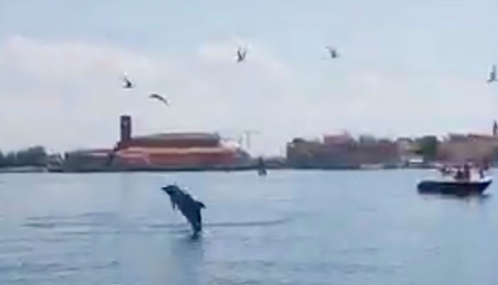 An unusual happy dolphin in the Venice lagoon! pic.twitter.com/5E6SafFJLC