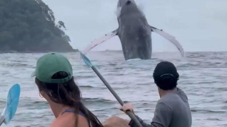Ένα απρόσμενο και θεαματικό θέαμα είχαν την τύχη να απολαύσουν δύο άτομα που έκαναν καγιάκ στην Κόστα Ρίκα, όταν ένα κοπάδι φαλαινών έκανε την εμφάνισή του λίγα μόλις μέτρα μακριά τους, προσφέροντάς τους μια εμπειρία που δύσκολα θα ξεχάσουν.