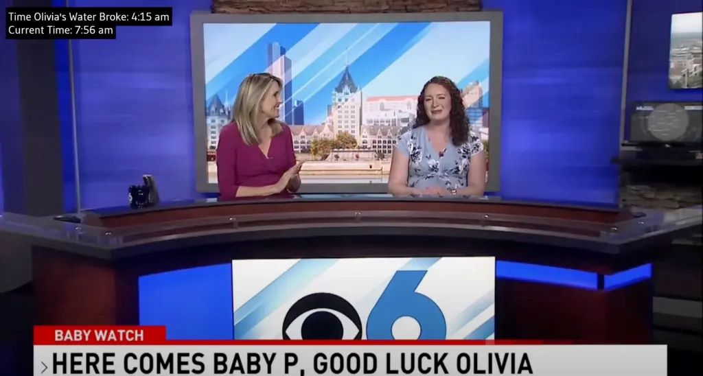 Στην αρχή του δελτίου, η Dunn δήλωσε: «Έχουμε ένα έκτακτο γεγονός αυτό το πρωί. Κυριολεκτικά, τα νερά της Olivia έσπασαν, και αυτή τη στιγμή παρουσιάζει τις ειδήσεις ενώ είναι σε ενεργό τοκετό».