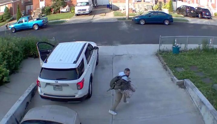 Ένας άνδρας από το Στάτεν Άιλαντ βρέθηκε σε μια άγρια αντιπαράθεση όταν μια ζωηρή γαλοπούλα τον κυνήγησε γύρω από το αυτοκίνητό του, σε μια ξέφρενη αναμέτρηση που κατέγραψε η κάμερα.