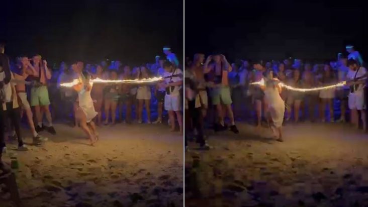 Έπειτα από μερικά ποτά, αποφάσισε –όπως λέει– να «κάνει κάτι τρελό» και ζήτησε από τον 29χρονο σύντροφό της, Άμπεντ, να τη βιντεοσκοπήσει ενώ δοκίμαζε να παίξει σχοινάκι, με το φλεγόμενο σχοινί.