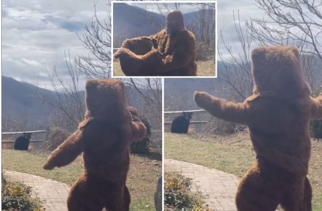 Το βίντεο κατέγραψε τις πολλαπλές συναντήσεις μεταξύ μιας μαύρης αρκούδας και ενός άνδρα που φορούσε μια στολή αρκούδας Grizzly στο Άσβιλ της Βόρειας Καρολίνας.