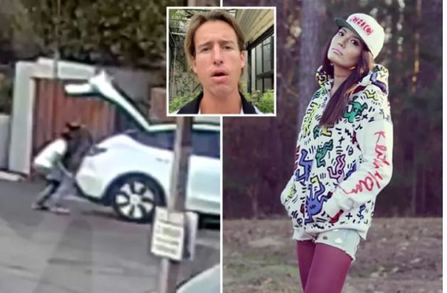 Τα πλάνα παρακολούθησης που ελήφθησαν από το TMZ δείχνουν τον Samuel Haskell IV να παρκάρει το λευκό του Tesla δίπλα σε έναν κάδο απορριμμάτων στο Encino το απόγευμα της Τρίτης πριν ανοίξει το πίσω μέρος για να βγάλει μια μεγάλη σακούλα σκουπιδιών.
