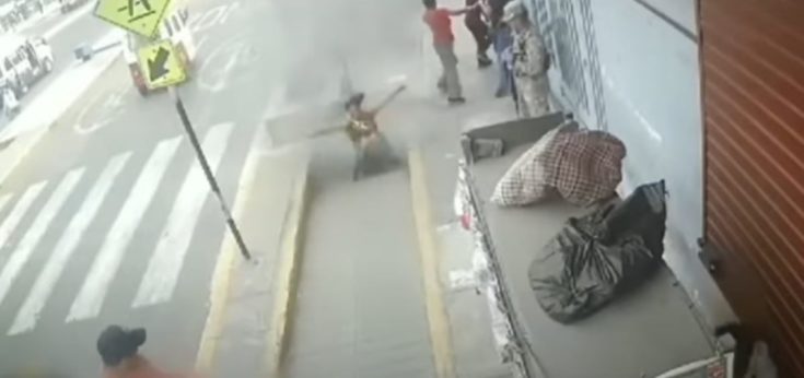 Η στιγμή που μία γυναίκα στο Περού παγιδεύεται στο πεζοδρόμιο έπειτα από έκρηξη έχει καταγραφεί από κάμερα ασφαλείας.