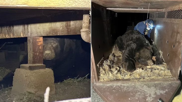 Οι ειδικοί για την άγρια ζωή έπρεπε να βρουν δημιουργικούς τρόπους για να απομακρύνουν την αρκούδα, η οποία ήταν υπερβολικά μεγάλη για να ηρεμήσει με φάρμακα. Η λύση που βρήκαν ήταν να της προσφέρουν έναν λαχταριστό γκουρμέ γεύμα, έτσι ώστε να την πείσουν να βγει από το καταφύγιό της.
