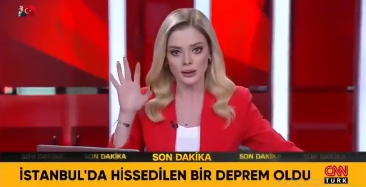 Moment of earthquake caught live on Turkish media outlet as anchor Meltem Bozbeyoglu reacts during broadcast pic.twitter.com/hEJSLra7zT