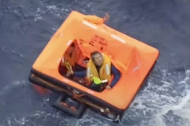 Σε βίντεο έχει καταγραφεί η απίστευτη στιγμή που δύο εξαντλημένοι άνθρωποι ανασύρονται ζωντανοί από σωσίβια λέμβο από τον Νότιο Ατλαντικό, 2.300 χιλιόμετρα μακριά από τη στεριά.