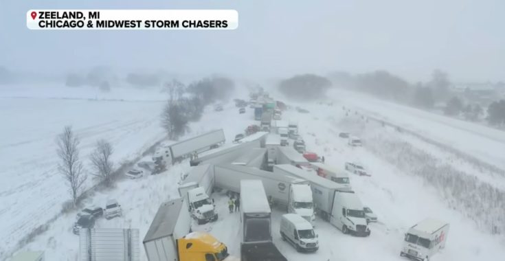 Η μεγάλη καραμπόλα στην οποία συμμετείχαν δεκάδες οχήματα έκλεισε μέρος της Διαπολιτειακής Οδού 196 στο Μίσιγκαν ύστερα από πολύ χαμηλές θερμοκρασίες και έντονες χιονοπτώσεις το πρωί της Δευτέρας.
