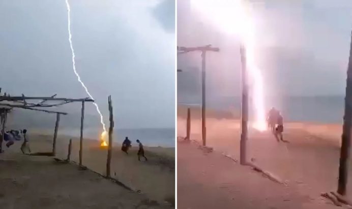 Ο κεραυνός χτύπησε το πρώτο άτομο, με αποτέλεσμα να πέσει στην άμμο. Στη συνέχεια χτύπησε ένα άλλο άτομο που έτρεχε να σωθεί, δείχνει το βίντεο που κυκλοφορεί στα μέσα κοινωνικής δικτύωσης .