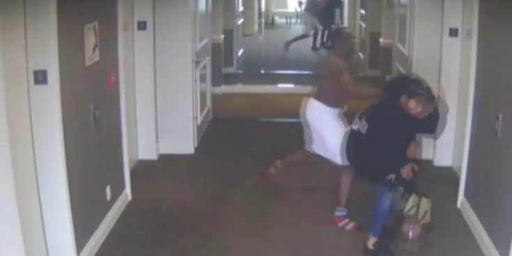 Το βίντεο, που περιήλθε στην κατοχή του αμερικανικού δικτύου CNN, έχει ληφθεί από την κάμερα κλειστού κυκλώματος ξενοδοχείου στις 5 Μαρτίου 2016. Σε αυτό φαίνεται ο ράπερ να τρέχει με μία πετσέτα πίσω από την τραγουδίστρια στον διάδρομο του ξενοδοχείου InterContinental στο Λος Άντζελες.
