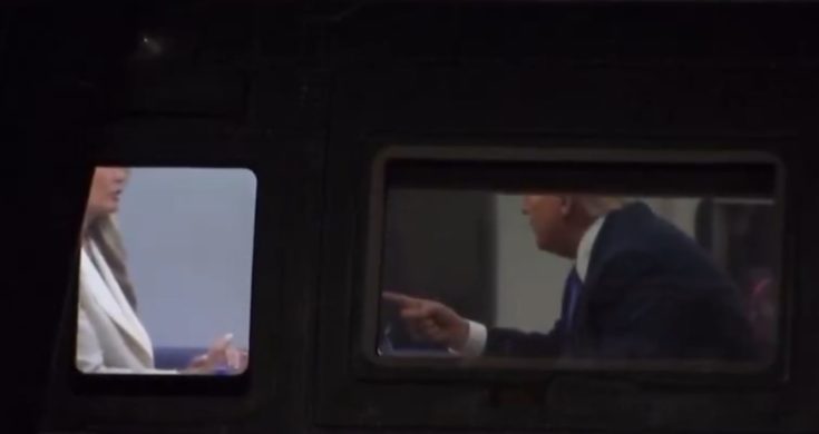 Ένα στιγμιότυπο που κατέγραψαν οι κάμερες στο προεδρικό ελικόπτερο, Marine One, το βράδυ της Τετάρτης προκαλεί συζητήσεις για τη σχέση του προεδρικού ζεύγους των ΗΠΑ, καθώς ο Ντόναλντ Τραμπ φαίνεται να κουνά το δάχτυλο προς τη σύζυγό του, Μελάνια, η οποία αντιδρά με ένα κούνημα του κεφαλιού.