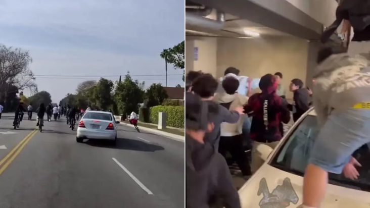 Μετά το περιστατικό στον δρόμο, οι ποδηλάτες φέρεται να καταδίωξαν τον οδηγό και να τον εγκλώβισαν σε έναν χώρο στάθμευσης. Σε σχετικό βίντεο, φαίνεται η ομάδα ποδηλατών να επιτίθεται στον άνδρα, χτυπώντας τον με γροθιές και κλωτσιές, ενώ κάποιοι ανέβηκαν στο αυτοκίνητό του και έσπασαν τα παράθυρα.