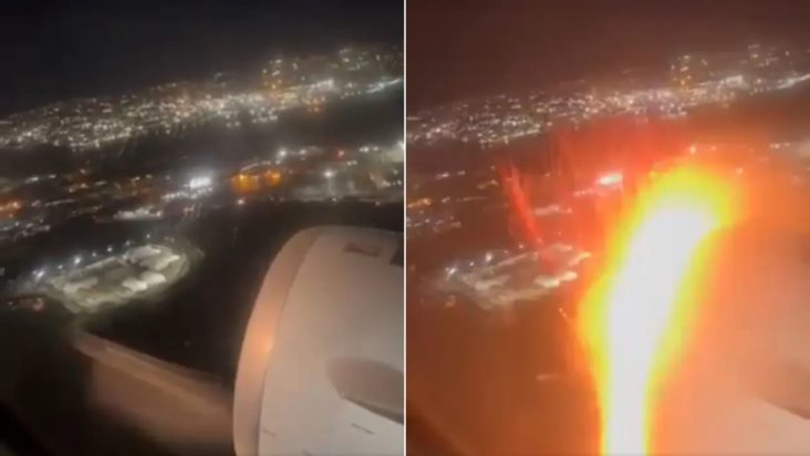 Βίντεο που τράβηξε επιβάτης της πτήσης, το οποίο δημοσιεύτηκε στο X, δείχνει τη στιγμή που το πτηνό πέφτει στον κινητήρα και πιάνει φωτιά.