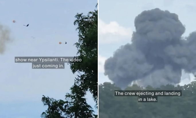Οι πιλότοι εκτινάχθηκαν από ένα μαχητικό αεροσκάφος MiG-23 λίγο πριν συντριβεί κατά τη διάρκεια του Thunder Over Michigan την Κυριακή. Οι συγκλονιστικές στιγμές καταγράφηκαν σε βίντεο.