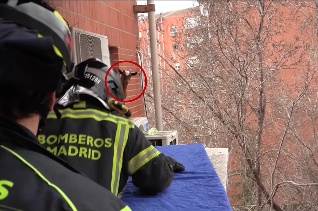 Μια ασυνήθιστη διάσωση πραγματοποιήθηκε στη Μαδρίτη, όταν η πυροσβεστική υπηρεσία κλήθηκε να διαχειριστεί ένα έκτακτο περιστατικό, με πρωταγωνίστρια μια… κατσίκα που βρέθηκε να στέκεται στην άκρη σε περβάζι, ενός διαμερίσματος, στον 5ο όροφο.