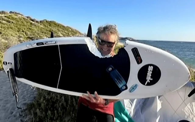 Στο βίντεο που δημοσίευσε το news.com.au, φαίνεται ο 61χρονος να πέφτει από τη σανίδα και να προσπαθεί να αναδυθεί ξανά.