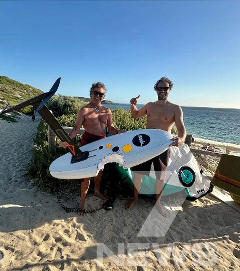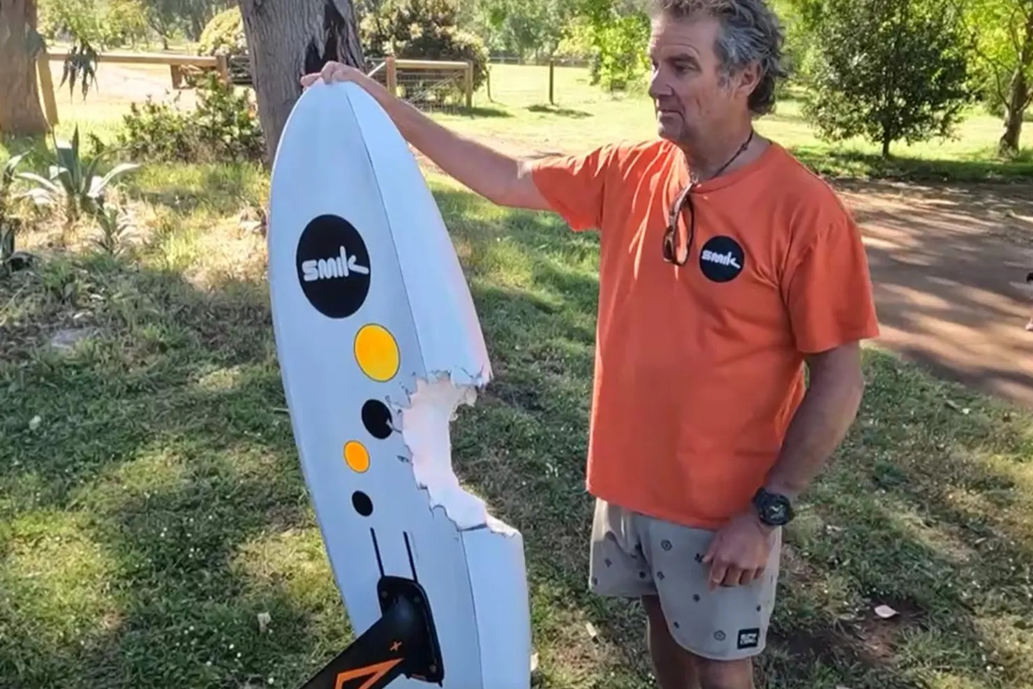 West Australian windsurfer Andy McDonald survived a terrifying encounter with a suspected great white shark near Margaret River. Caught on camera at Prevelly Beach, the shark bit his foil board, but thankfully, he… pic.twitter.com/VET2izAfNT
