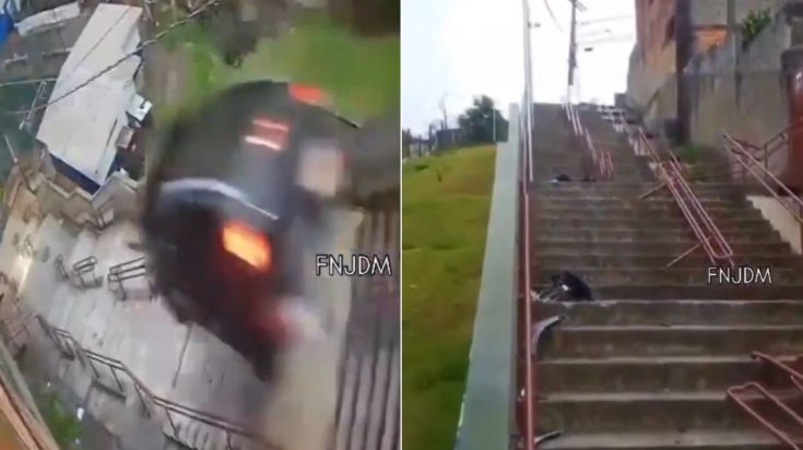 📲 Motorista de carro que ‘voou’ sobre escadaria sofre apenas um arranhão