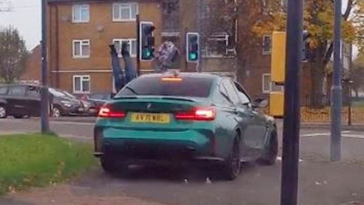 Συγκλονιστικά πλάνα από κλειστό κύκλωμα παρακολούθησης δείχνουν τη στιγμή που ένας πεζός εκσφενδονίζεται στον αέρα, αφού ο οδηγός μιας BMW τον χτυπάει ενώ προσπαθεί να ξεφύγει από μια αστυνομική καταδίωξη εναντίον του.