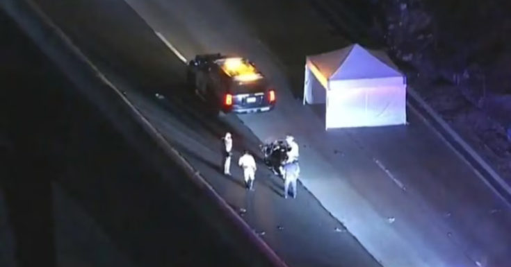Σύμφωνα με το KTLA, ο άνδρας χτυπήθηκε από δύο αυτοκίνητα. Οι αστυνομικοί επιχείρησαν να του προσφέρουν πρώτες βοήθειες μέχρι να φτάσουν τα ασθενοφόρα και η Πυροσβεστική Υπηρεσία του Λος Άντζελες.