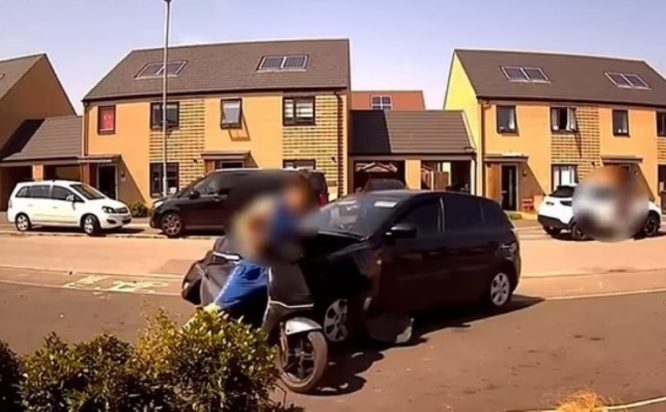 Ένα συγκλονιστικό περιστατικό καταγράφηκε σε κάμερα ασφαλείας στη Βρετανία, όταν ένας οργισμένος οδηγός χρησιμοποίησε το αυτοκίνητό του ως όπλο για να χτυπήσει ένα μηχανάκι, εκτοξεύοντας τον αναβάτη του στον αέρα.