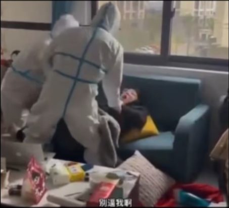 Ένα συγκλονιστικό βίντεο που δείχνει άνδρες των αρχών ασφαλείας της Κίνας να σηκώνουν με τη βία και να παίρνουν από το σπίτι του άνδρα που αρνήθηκε να μπει σε εγκαταστάσεις απομόνωσης στην Κίνα, δημοσιεύει η εφημερίδα Ντέιλι Μέιλ.