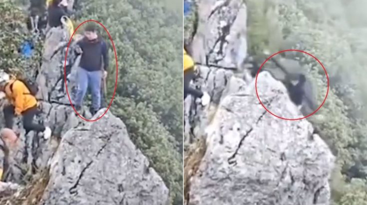 A tourist hiking a mountain in China fell off a cliff while trying to take a selfie 🤳