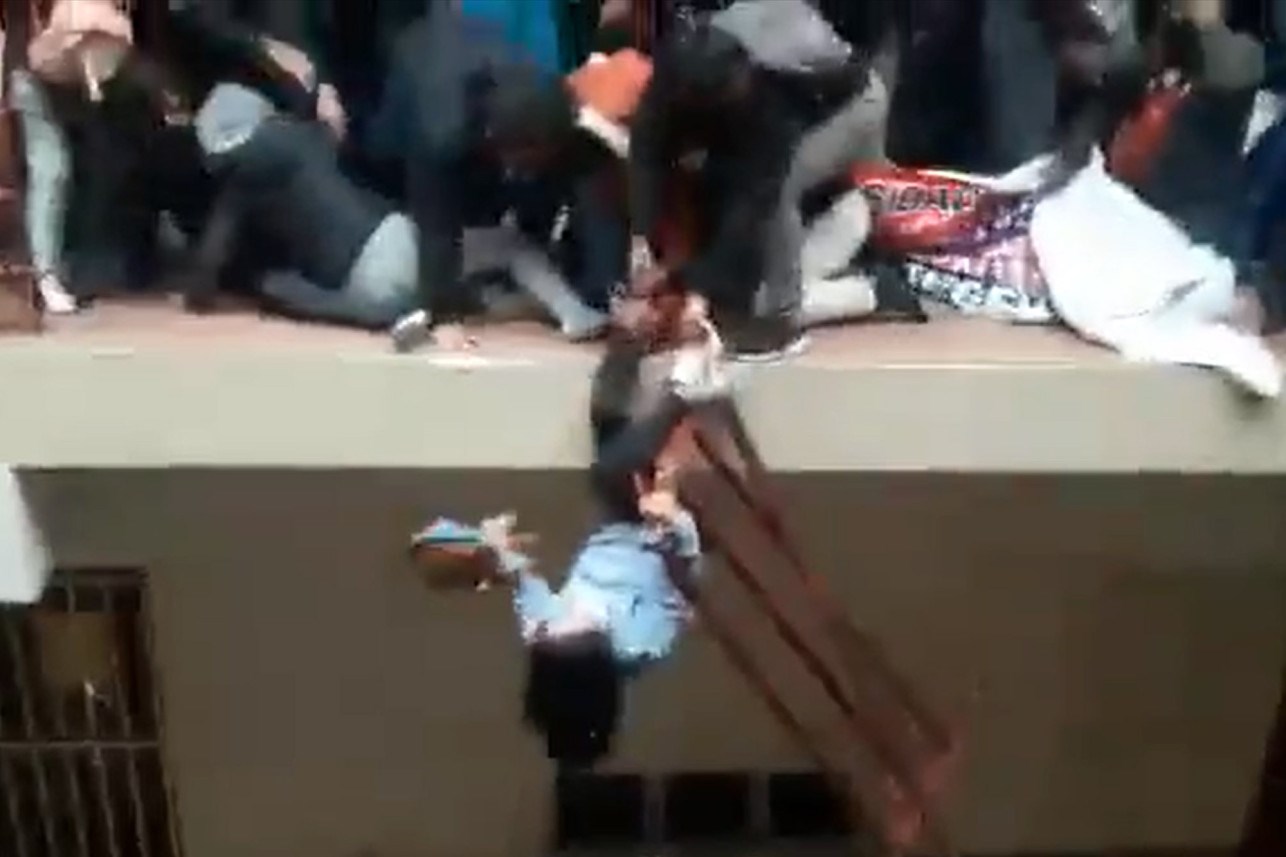 Σοκάρει το βίντεο από τη στιγμή του δυστυχήματος σε Πανεπιστήμιο της Βολιβίας, όπου υποχώρησε το κιγκλίδωμα από μπαλκόνι του τέταρτου ορόφου του κτιρίου, με αποτέλεσμα αρκετοί από τους φοιτητές που συνωστίζονταν εκεί να βρεθούν στο κενό και εφτά να σκοτωθούν.