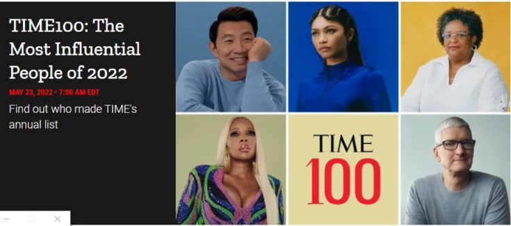 O διευθυντής της εφημερίδας Novaya Gazeta και τιμηθείς με το βραβείο Νόμπελ Ειρήνης, Ντμίτρι Μουράτοφ, περιλαμβάνεται στη λίστα του περιοδικού TIME με τις 100 προσωπικότητες με τη μεγαλύτερη επιρροή παγκοσμίως για το 2022. Στην ίδια λίστα έχουν περιληφθεί μέχρι στιγμης , η Όπρα Γουίνφρη, και η Κριστίν Λαγκάρντ, όπως και ο Τιμ Κουκ, πρόεδρος και CEO της Apple.