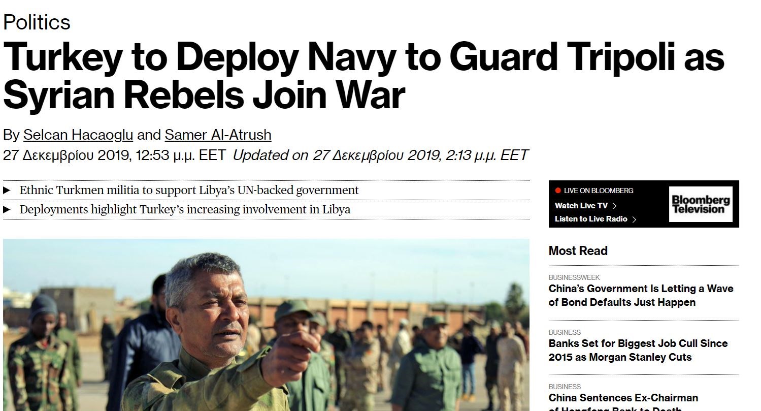 Ταυτόχρονα, ομάδες ανταρτών που βρέθηκαν στο πλευρό των τουρκικών δυνάμεων στην εισβολή στη βόρεια Συρία αναμένεται να ενισχύσουν την κυβέρνηση της Τρίπολης, όπως επιβεβαίωσε στο Bloomberg ένας δεύτερος αξιωματούχους στη Λιβύη. Και οι δύο που μίλησαν στο Bloomberg ζήτησαν να παραμείνει κρυφή η «ταυτότητά» τους.